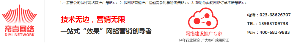 帝壹网络,是一家一站式借力互联网营销运营高科技企业。 长期致力于信息化领域的探索研发和全程服务,帝壹网络业务纵深涉及政府的网站建设和企事业单位的网站建设、网络推广、微信建设营销、应用软件开发以及咨询服务等众多领域。提供互联网全面网络信息咨询与解决方案。(www.diy88.com.cn)
